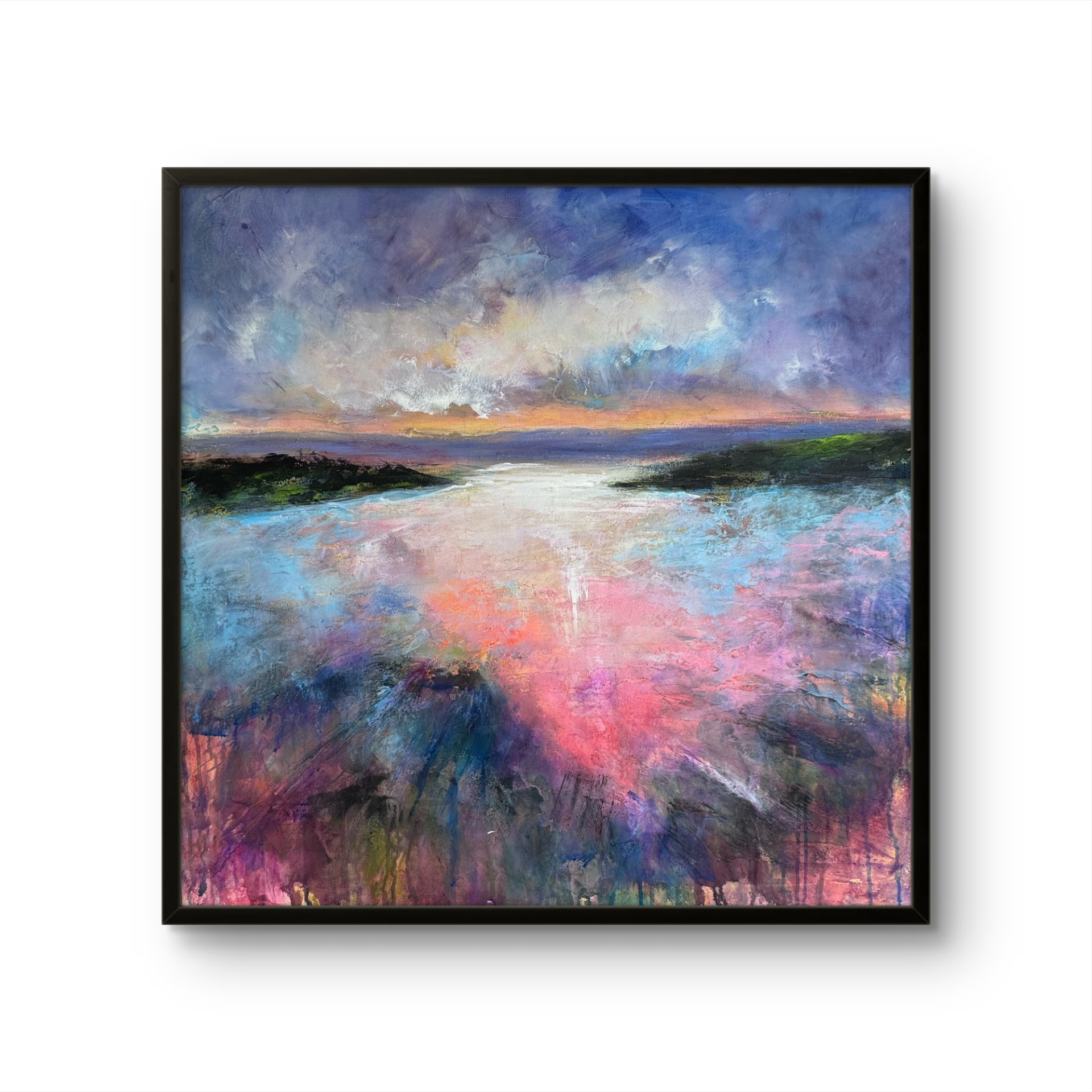 Obraz zobrazuje imaginární krajinu, která vzniká prolínáním a překrýváním různých odstínů barev. Tato technika umožňuje umělci vytvořit dílo, které není vázáno na konkrétní geografickou lokalitu, ale spíše na emoce a dojmy, které v divákovi vyvolává.